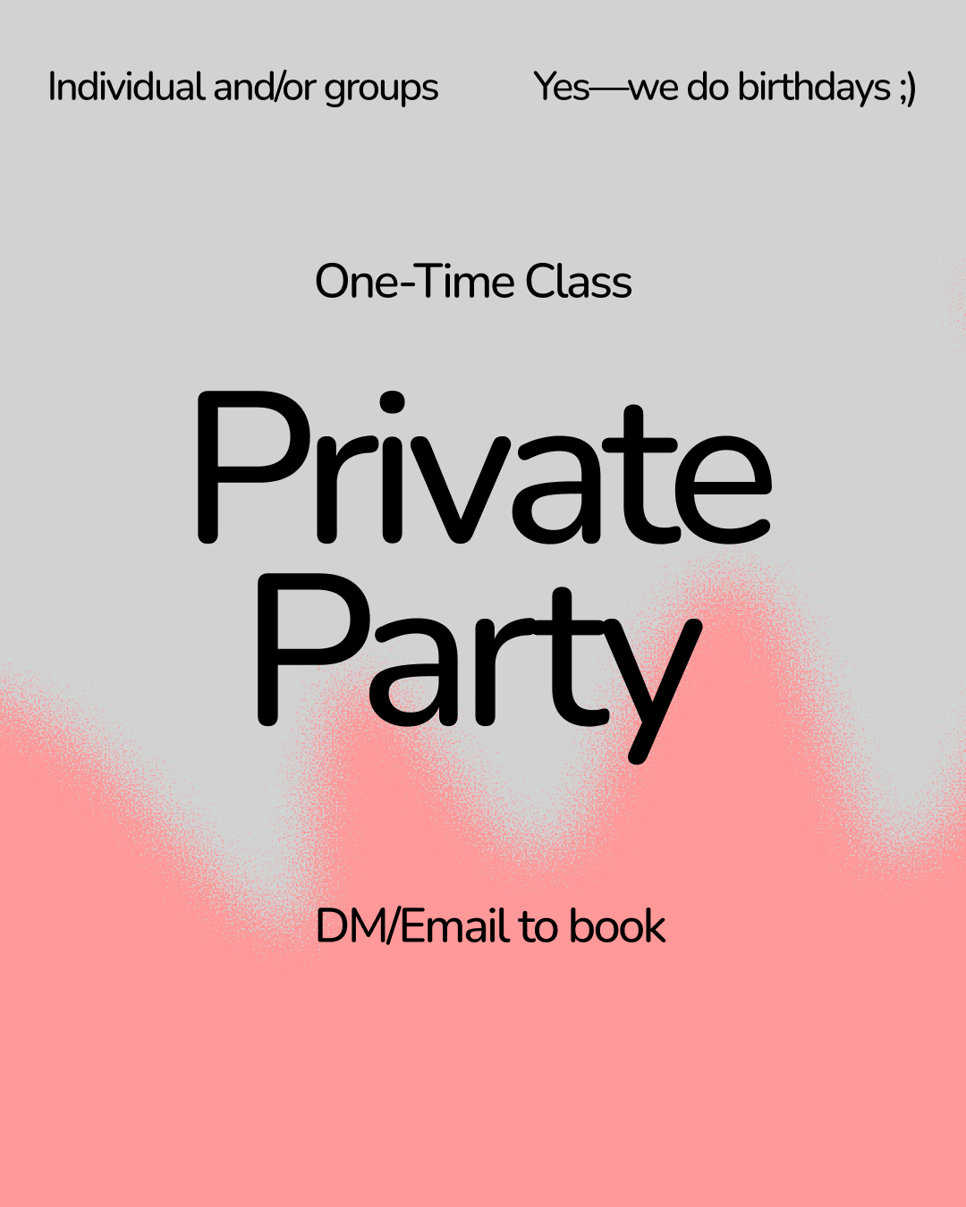 This is the perfect option for you! Email, text, or call me to book your very own private party! This 2 hour long, one-time class is a fun way to get creative and create something you'll remember for a long time.